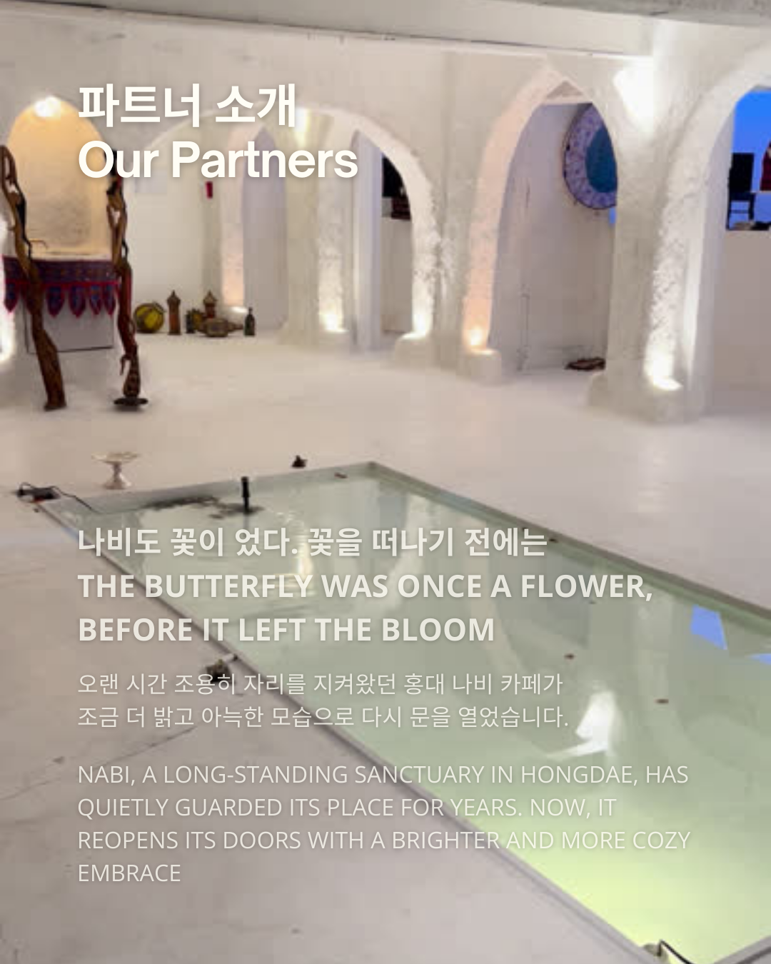 - Venue : Nabi (B1, 19-9 Wausan-ro 17-gil, Mapo-gu, Seoul) "The butterfly was once a flower, before it left the bloom."
